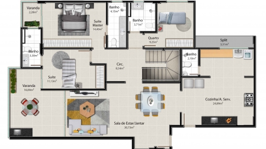 Cada apartamento é pensado nos mínimos detalhes, possuindo os seguintes cômodos:
